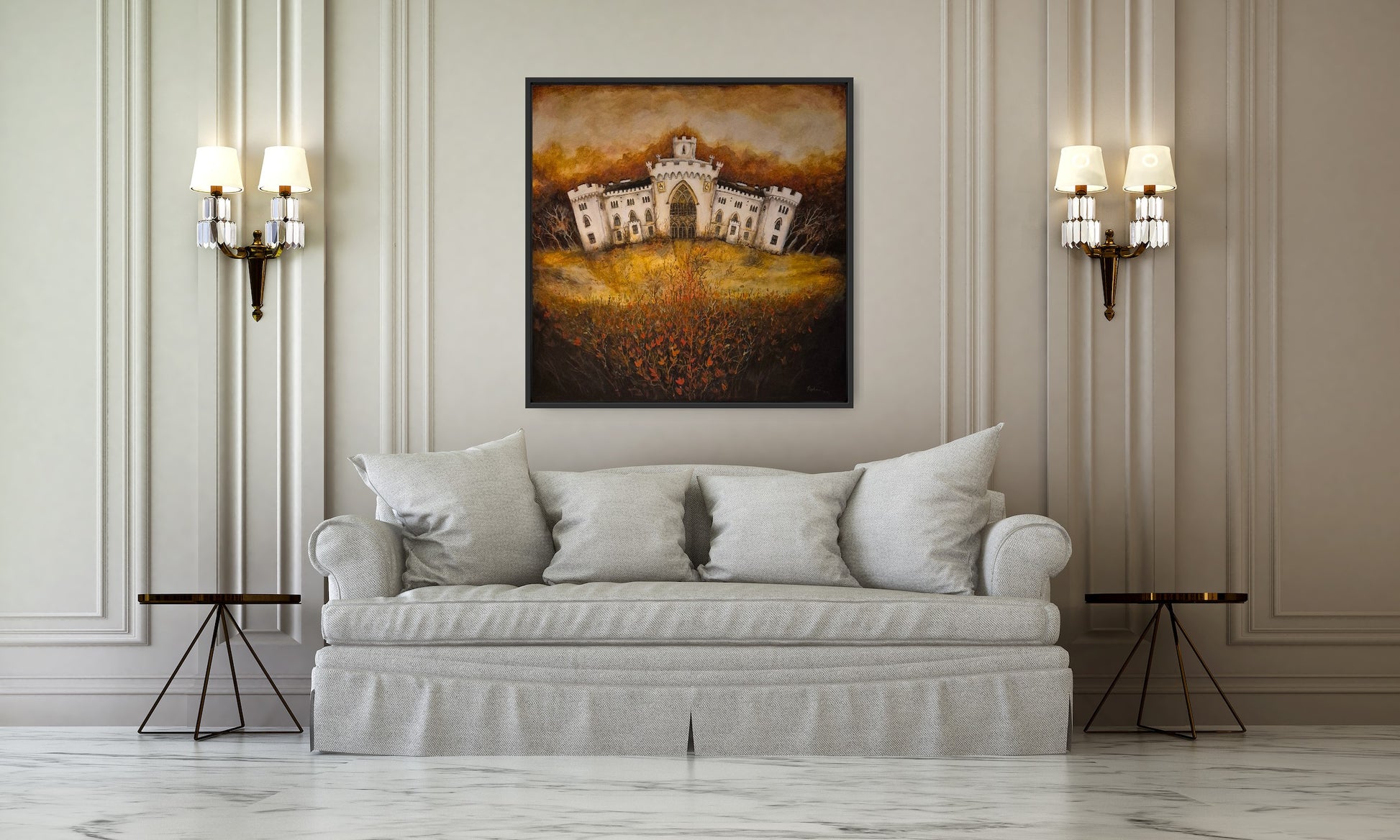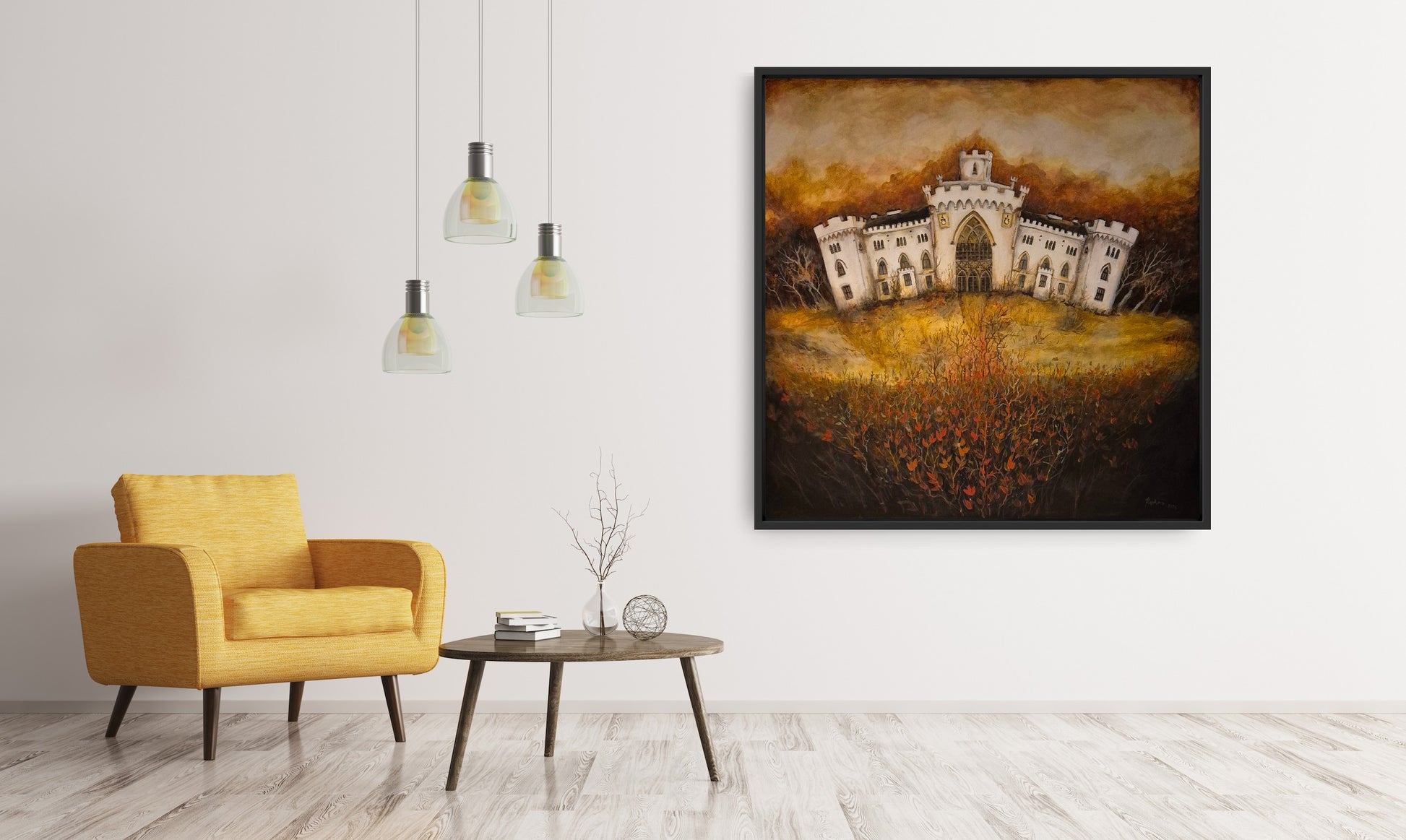 Spiaci kaštieľ - Rusovce, 100x100cm, akryl na plátne.